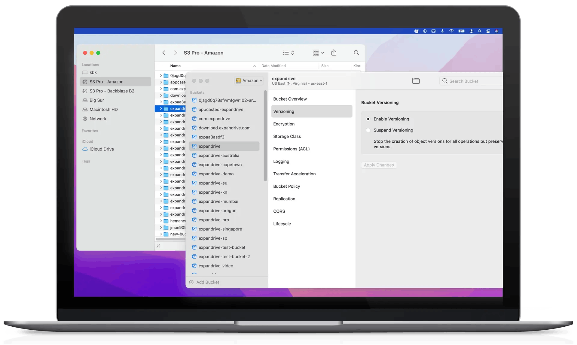 ExpanDrive lets you select which buckets you want accessible in your apps. Choose just what you need and ignore the rest.