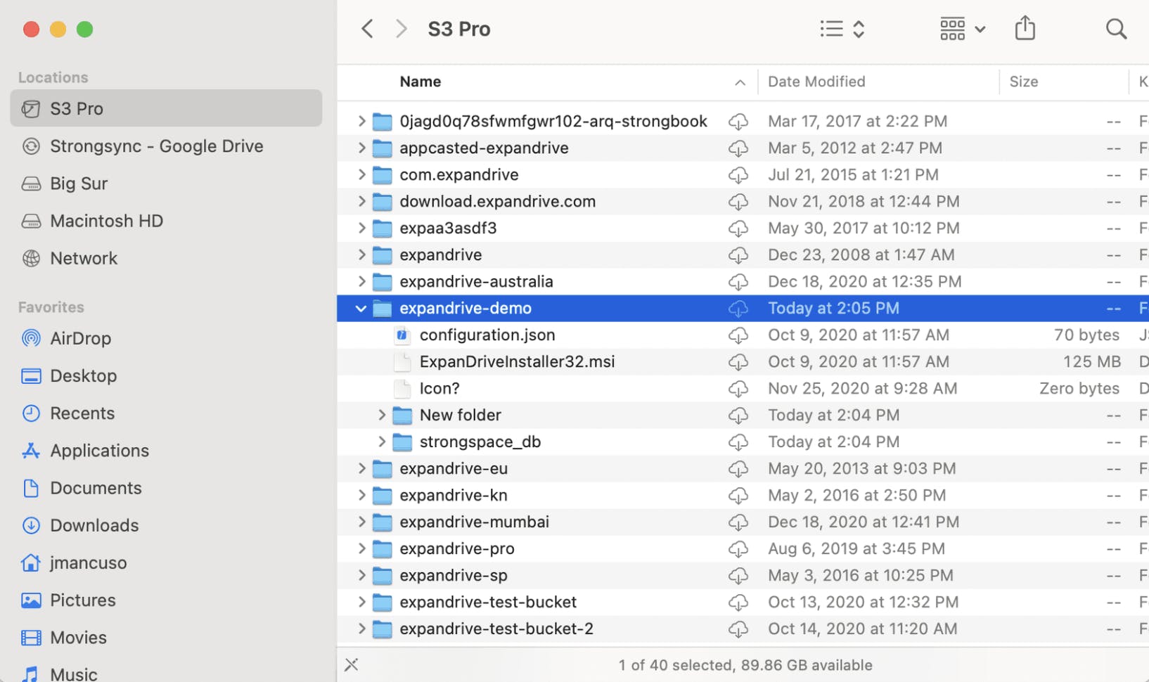 One of the most unique aspects of ExpanDrive is that the files you don't needlessly use up any free space on your Mac. Files get downloaded transparently when another app requests them or when you request them in Finder.