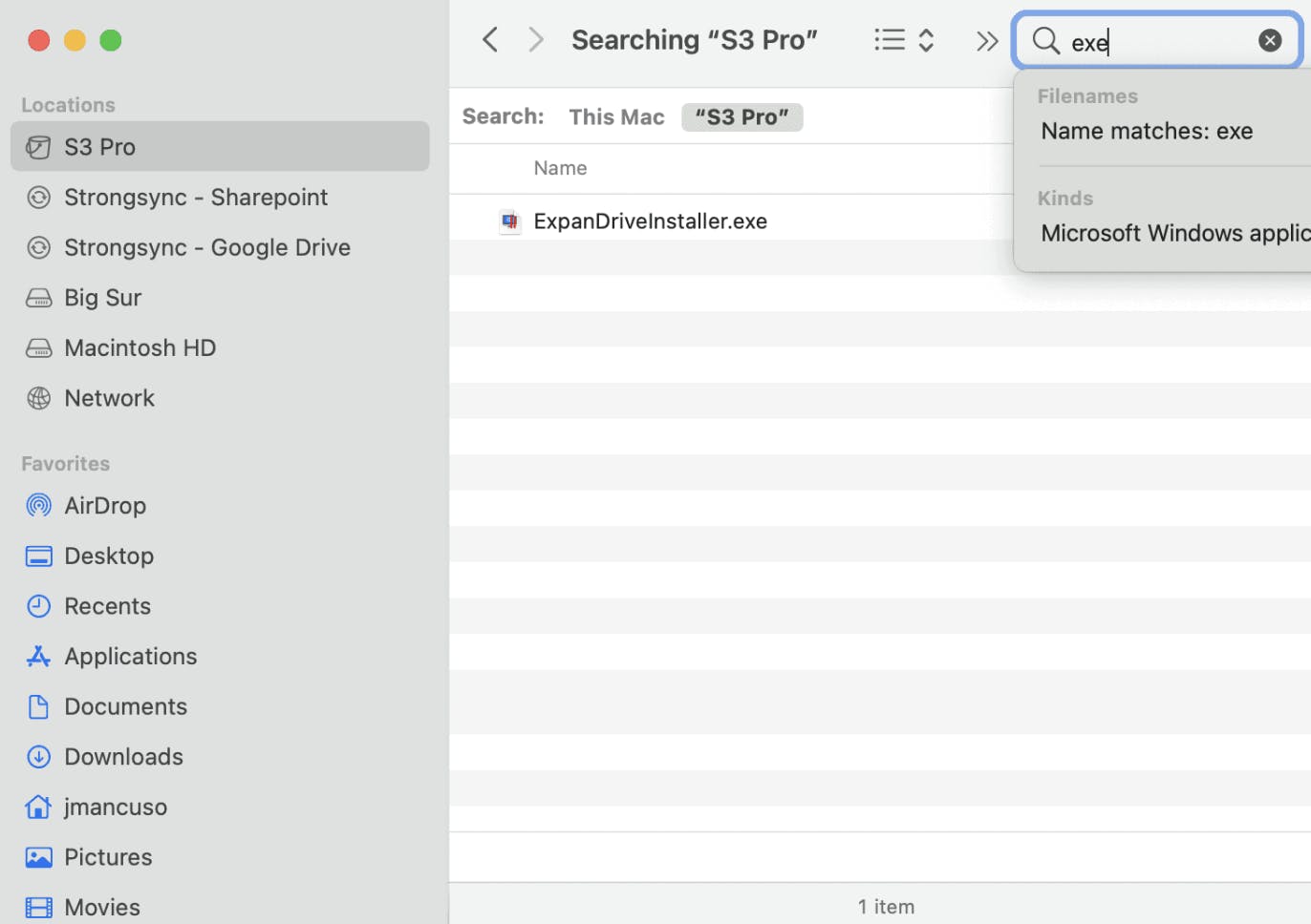ExpanDrive shows up in the Finder Sidebar along with every open and save dialog, in any app. It works with posix apps from the terminal. The on-disk content resides in ~/Library/CloudStorage. ExpanDrive fully integrates with Spotlight search for content you've previously browsed.